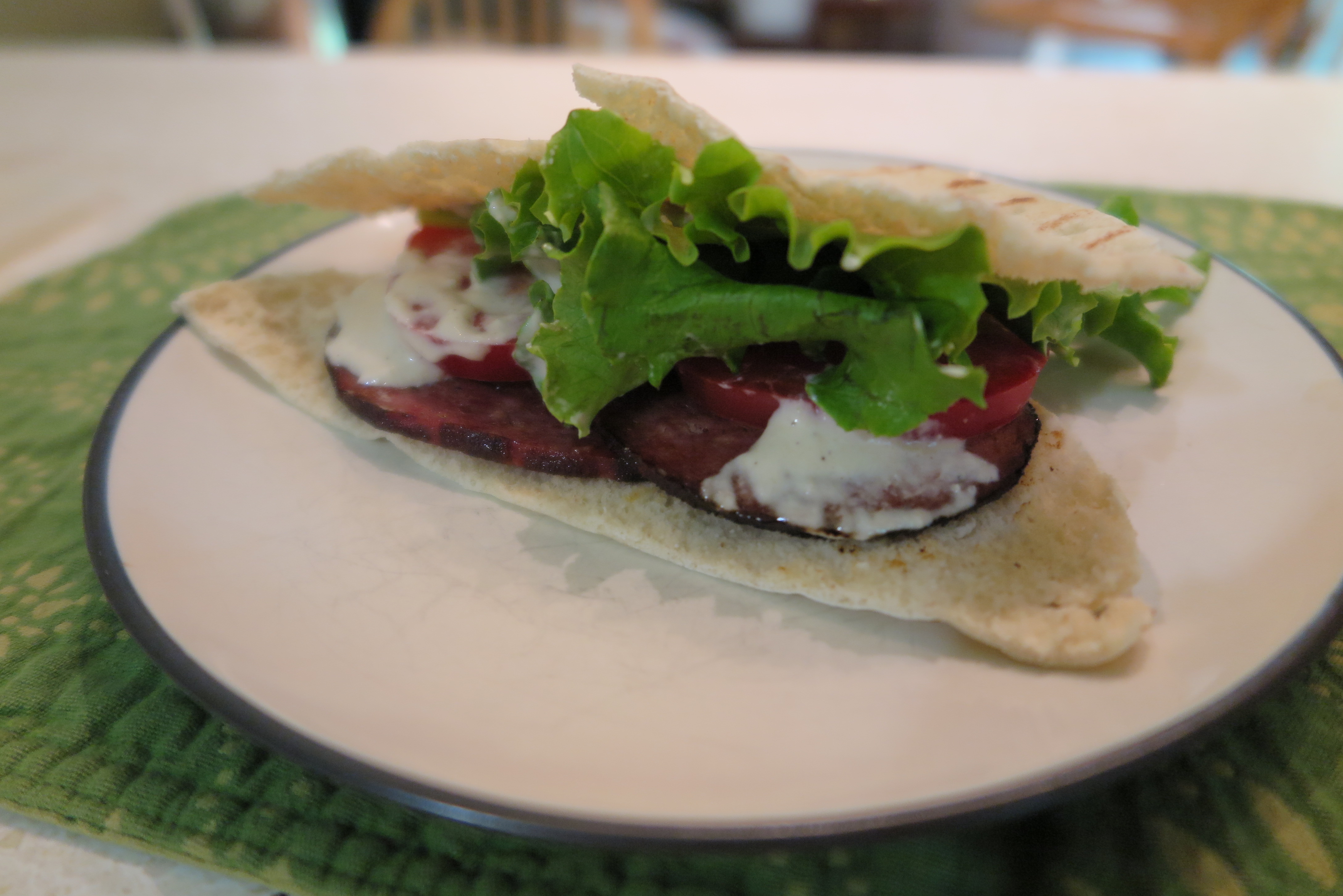 Summer Veggie/Cheve Salad with Immersion Blender Tahini Sauce