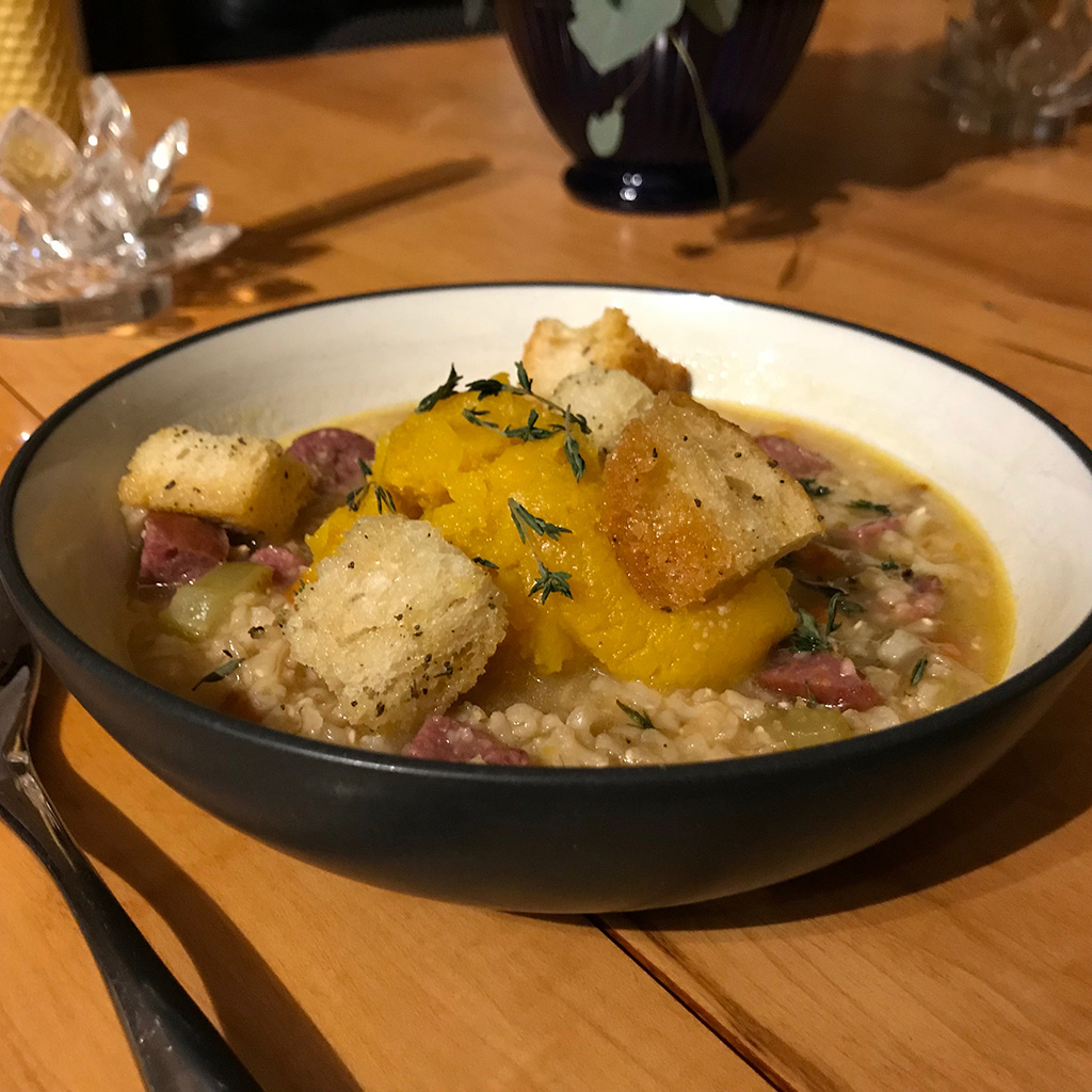 Mmmmm, squash soup. What a great way to feel warm and full on these colder, longer evenings. So simple to make, too.