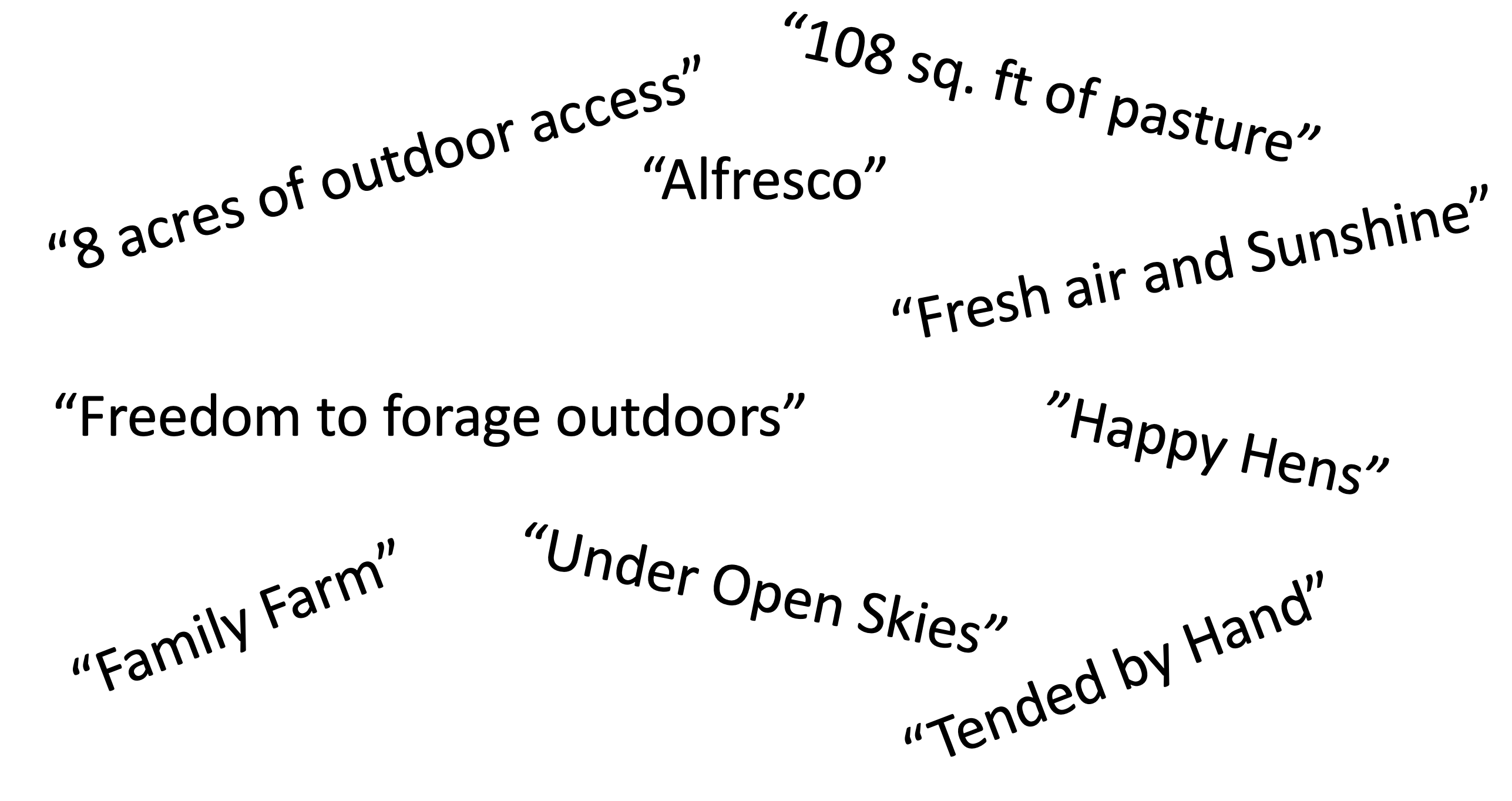 “Tending by Hand” or “Family Farm” doesn’t have anything to do with the quality of the pasture these hens are raised on.
