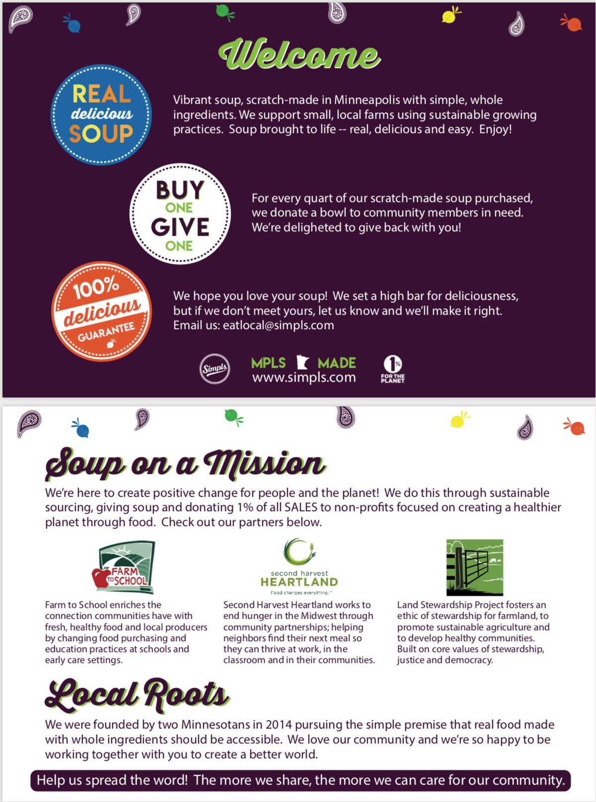 For every quart of soup sold, TC Farm and Simpls have partnered to contribute a bowl to those in need right here in Minnesota.