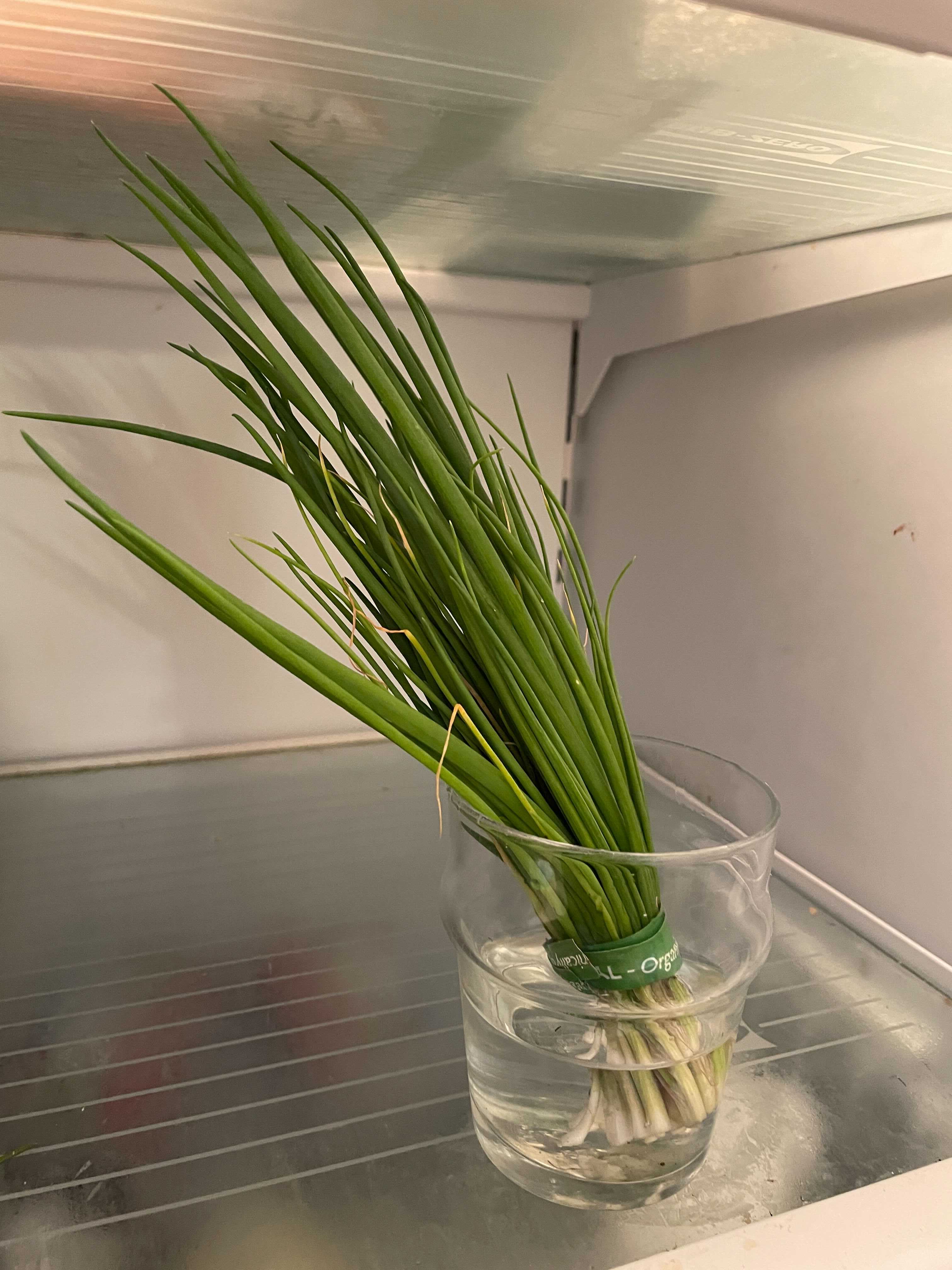 Put your fresh herbs in a small glass of water, just like you would for fresh cut flowers!